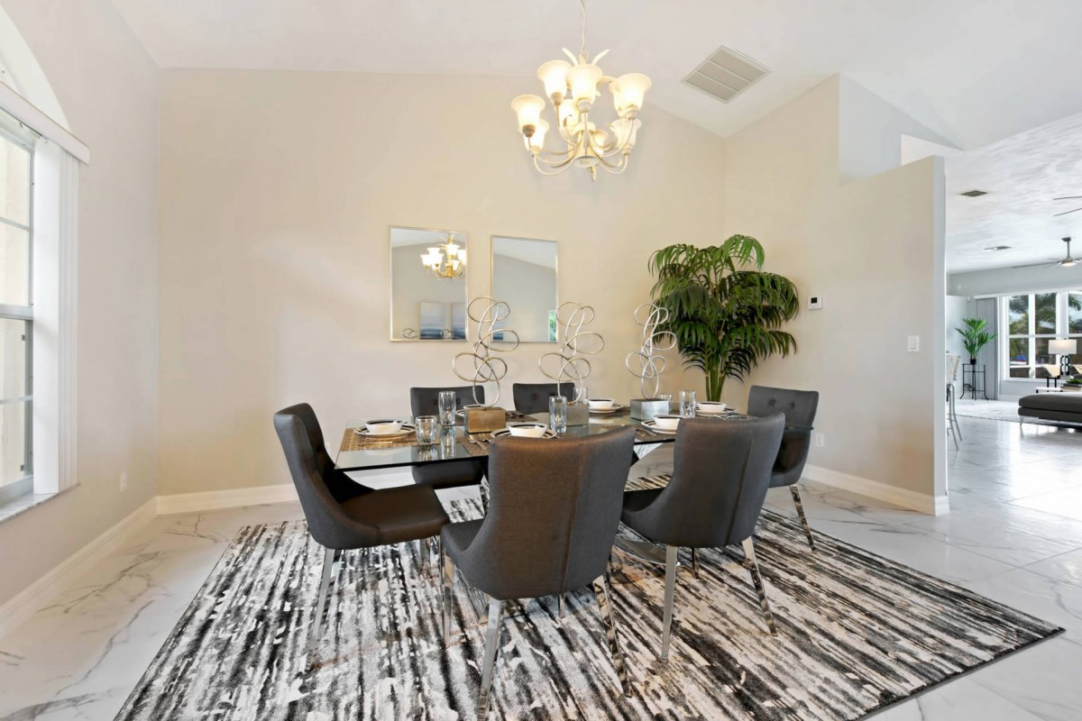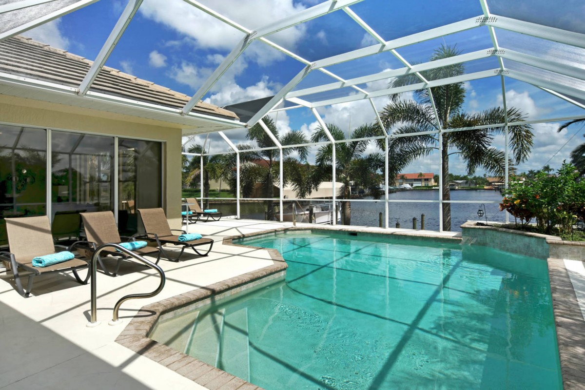 Die Villa Dolphin Cove steht in einer der besten Lagen von Cape Coral, im Rose Garden. Beeindruckend ist die Lage am breiten Salzwasserkanal mit großer Wasserfläche und kurzem Zugang zum Golf von Mexico.